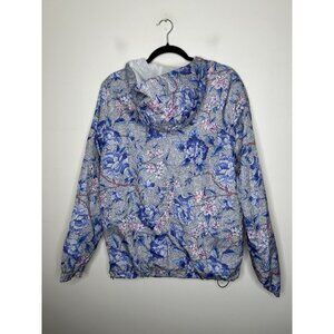 Offbeat Half-Zip Pixelated Floral Windbreaker Rain Jacket Kangaroo Pocket Small