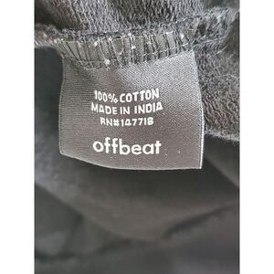 This is a black Offbeat sweatshirt for men in size M, featuring a crew neck, long sleeves, and a solid pattern. Made of heavyweight cotton jersey, it has an embroidered logo. The sweatshirt is designed in a regular fit and is machine washable. It embodies streetwear, grunge, casual, gothic, and Japanese styles, suitable for all seasons.