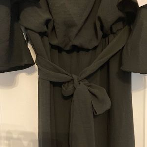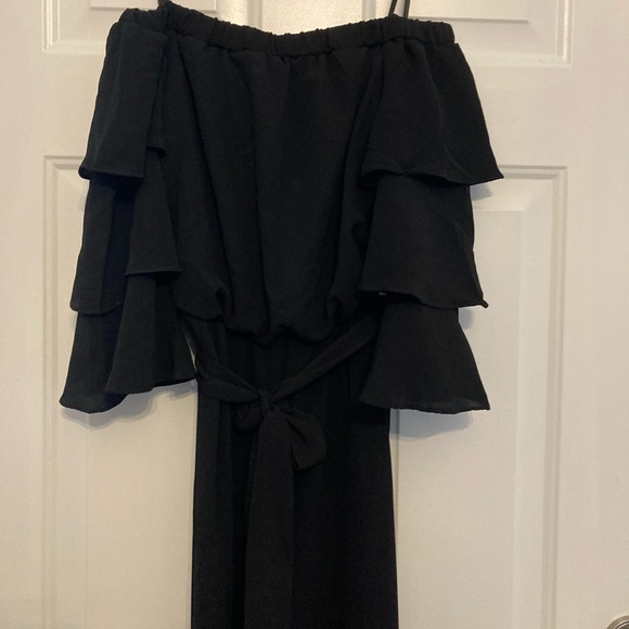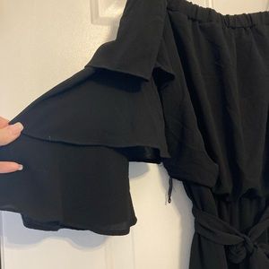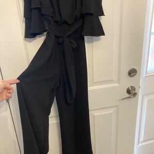NWT Black off the shoulder pant suit. 3/4 cascading bell sleeves. W/ waist tie.