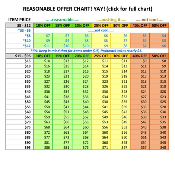 Love a deal but don't want to math? Use these handy Reasonable Offer Charts to make an offer on any item! ๐
