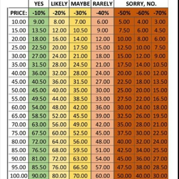 Offer Guidelines - I try to price my items so that they are reasonable and that it keeps in mind that you will have your additional fees to these items. If you feel the pricing is too high please submit an offer - depending on the day I might just accept the offer. I myself shop at poshmark first and I do my research and look at other items for a reasonable price.