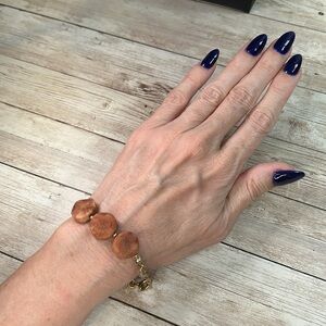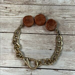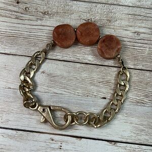 Elegant gold chain bracelet featuring unique brown stone accents. Perfect for adding a touch of sophistication to any outfit.