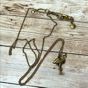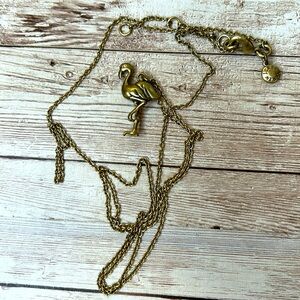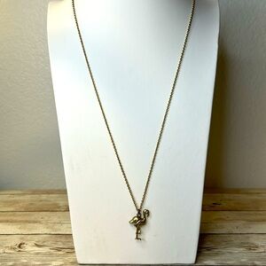 Elegant gold flamingo pendant necklace perfect for bird lovers. Adds a touch of charm to any outfit.