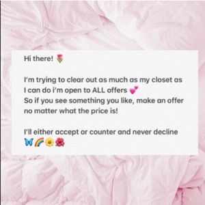 This weekend only I will accept all offers, if it’s a low ball I will counter but still make it fair. Moving and need some things gone(: please feel free to send some offers on any likes!! Happy Memorial Day weekend(: 🇺🇸