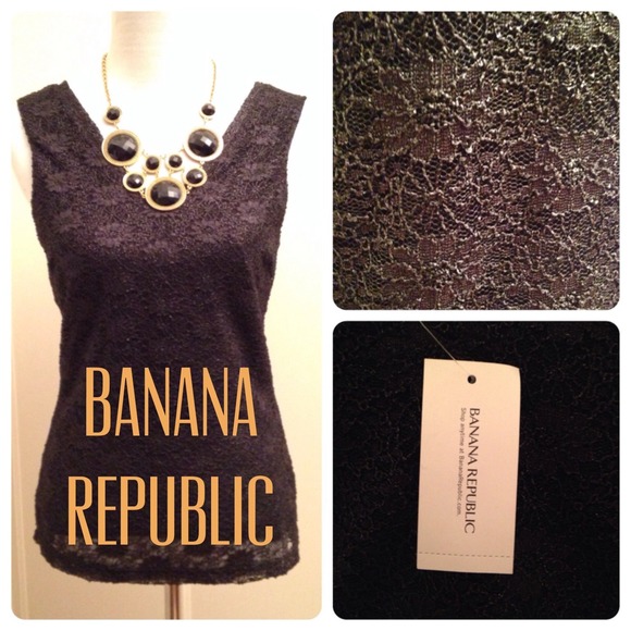 Black floral lace v-neck top. New with tags, never worn. Featured 6/13 in Showroom "Banana Republic Under $25" & Host Pick 5/17