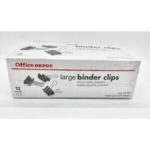 Office Depot Lrg Binder Clips NEW Box of 12 Office Supplies Ea Holds 120 Sheets