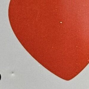 White with a red heart and black font
