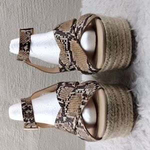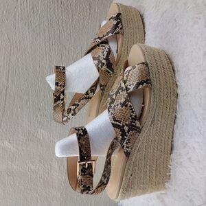 Office London Brown Snakeskin Open Toe Slingback Platform Espadrille Sandal Shoe