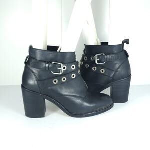 Office London Women’s US7,5 EU38 Black Leather Front Zip Studded Ankle Booties .