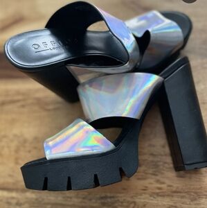 EUC, Office london silver holographic chunky sole platform mules sz 39 us. Heel measures approx. Platform approx 1" Check out our closet and bundle to save 💵bundles over 5 lbs will require purchase of extra postage. Offers always welcome 😊Non-smoking cat friendly home 😻Bookmark our closet as new items added weekly 💕thank you for shopping our closet