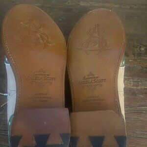 Patent leather green with tan & blue suede leather.