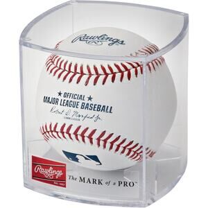 Each baseball is brand new and unused, housed in a clear acrylic display cube to preserve its pristine white leather and red-stitched detailing. Crafted to exact Major League specifications, this ROMLB-R baseball reflects the quality and precision trusted by players and collectors alike.