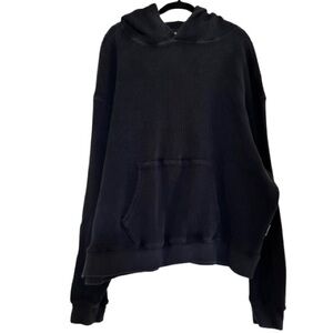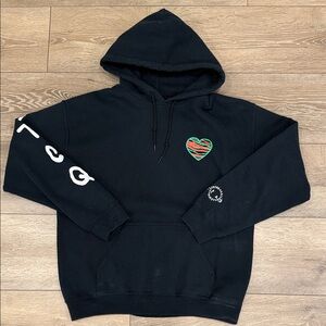 Elevate your casual wardrobe with this sleek black hoodie, featuring bold red graphic accents on the sleeves. Perfect for a modern, laid-back look.