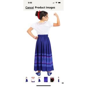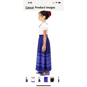 The Official Disney Store Encanto Luisa Costume Dress for Girls in size 5/6 features a white and purple color scheme, perfect for any young fan of the popular animated movie. Made of polyester, this dress embodies the style and theme of Encanto, making it a fun and whimsical choice for any costume or playtime ensemble. With its authentic Disney brand and attention to detail, this dress is sure to bring joy to any little girl's wardrobe.