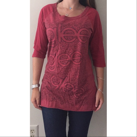 Official Glee merchandise. Maroon baseball tee. Size L. Runs small.