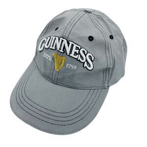 This is an official Guinness Beer baseball hat from St. James Gate in Dublin, Ireland. It is a gray adjustable cap featuring the Guinness brand logo. Perfect for men who enjoy beer-themed accessories.