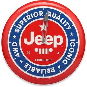 🧿 Jeep Official product: Practicality and Jeep pride go hand-in-hand with this bold wall clock! In shades of red, white, and blue, this piece is sure to make a stylish statement in your favorite room.