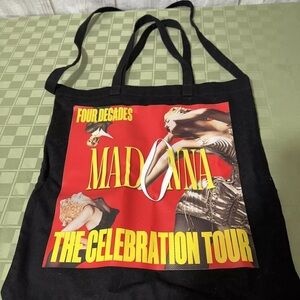 The bag is made from high-quality materials and is perfect for carrying all your essentials. Whether you're heading to a concert or just running errands, this Madonna Celebration Tour Tote Bag is a must-have for any fan. Get yours today and show off your love for Madonna!