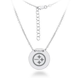 NFL Pittsburgh Steelers Engraved Disk Pendant Necklace Sterling Silver - Official Licensed
