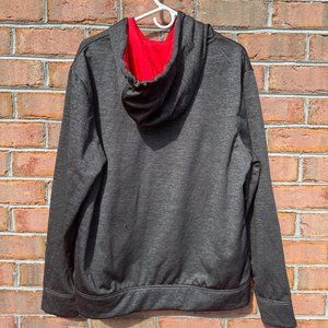 Design: Features a beautifully embroidered 'O' representing the Ohio State Buckeyes, set against a dark gray background with a vibrant red liner. The hoodie is finished with red drawstrings with metal tips, adding a touch of elegance to the sporty design.