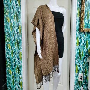 Elevate your style with this luxurious brown chevron pattern scarf, perfect for any occasion. This unisex accessory combines the warmth of pashmina with the elegance of silk, ensuring both comfort and sophistication.
