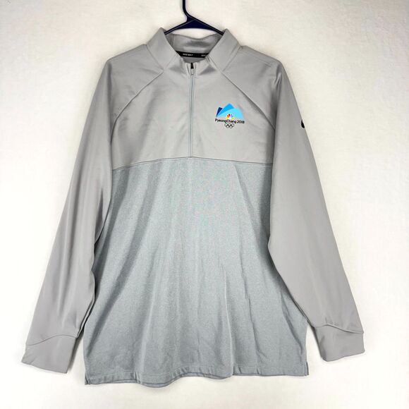 Tags: men's Olympic sweater, Nike Golf apparel, official PyeongChang 2018 gear, stylish gray quarter-zip, breathable fleece fabric, premium sportswear, lightweight Nike pullover, trendy men's athletic fashion, comfy size XL sweater, high-quality official Olympics merchandise, relaxed fit embroidered design, durable soft fleece material, modern sporty style, versatile casual wear, sharp Nike Golf design, premium men's Olympic apparel, timeless quarter-zip pullover, breathable moisture-wicking wear, comfy sports sweater, stylish fan gear