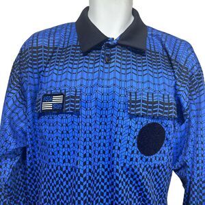 Official Sports Nisao Soccer Referee Blue Striped long Sleeve jersey Size L