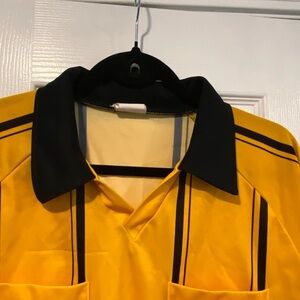 Long sleeve yellow black striped United States soccer federation referee jersey