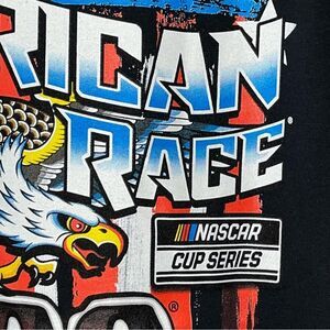 Chest and Back have banner “The Great American Race” with bright multicolor graphics of NASCAR logos, Daytona 500, A Bald Eagle, & the American Flag