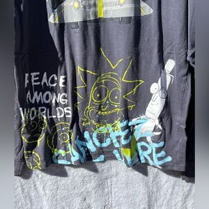 Official Rick & Morty long sleeve T-Shirt with space saucer on it and “peace among worlds” Size L