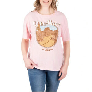 NWT Officially Licensed Willie Nelson Oversized Tee, in Color Pink with front graphic, short sleeved crewneck with dropped shoulder, 100% cotton jersey knit, brand new condition