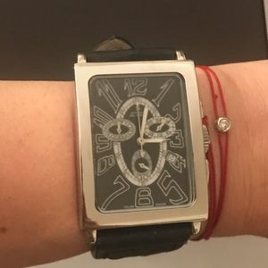 Classic, Italian Officina Del Tempo chronograph watch with black leather band. Worn only a few times. Needs new battery.