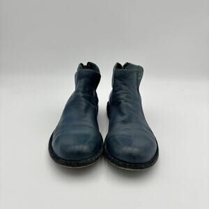 Officine Creative Blue Leather Ankle Zip Booties Boots Women's 37.5.