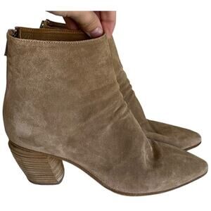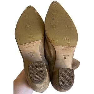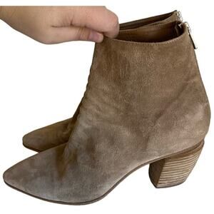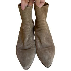 Suede ankle booties with angled heel. Custom Vibram grip soles added, custom Tacco insoles added as well.