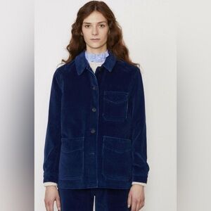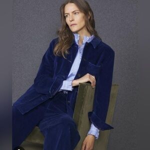 Chore jacket in japanese corduroy, 3 patch pockets with fake flaps. Loose fit. Fold over placket. Stone washed and bleached.