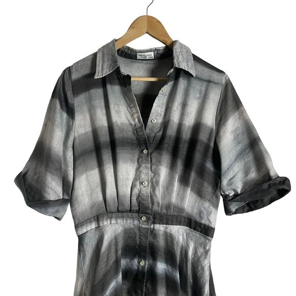Officine Générale Nadia Gray Striped Linen Short Sleeve Button Front Shirt Dress