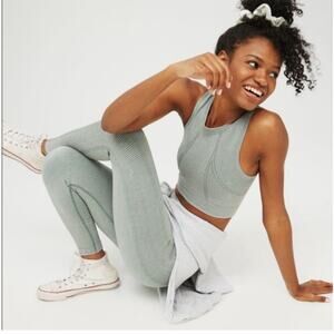 Offline By Aerie Main Squeeze Textured High Rise Gray Green Leggings Size Medium