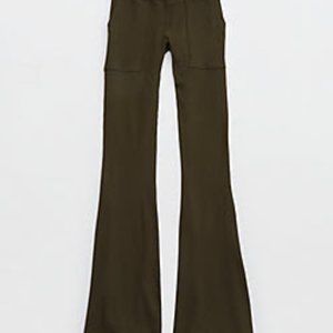 1. Nomad Olive OFFLINE By Aerie Ribbed Pocket Foldover Flare Legging & 1. Black OFFLINE By Aerie Real Me Waffle High Waisted Ruched Flare Legging (some small pulls)