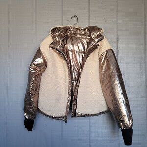Offline By Aerie Rose Gold Metallic Sherpa Lined Puffer Jacket. Size SP