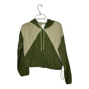 Offline By aerie Windbreaker Jacket Green Slouchy Hooded Track Zip Up. Size M.