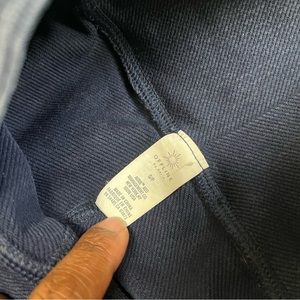 Thick quality material. Super comfy and less stretch so no knee sags.