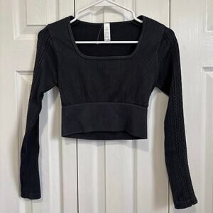 Offline by Aerie NWOT Black Cable Seamless Long Sleeve Cropped Top Small