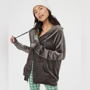 Offline by Aerie NWT Small After Party Velour zip up hoodie Gray