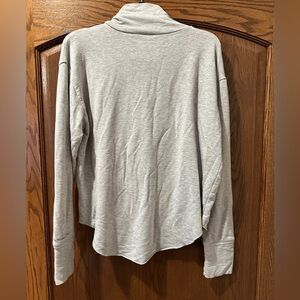 THE DEETS: Mock neck with everyone's fave: thumbholes. Plus! It's the little things: graphic on sleeve.