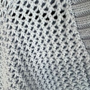 Wrap yourself in cozy comfort with this charming blue pullover sweater from Offline by Aerie. Designed with a stylish open-knit pattern and a flattering V-neckline, this sweater is perfect for those crisp fall days. The ribbed cuffs add a touch of snugness, making it an ideal choice for casual outings or relaxed weekends. Crafted from a soft blend of cotton and polyester, it's machine washable for easy care. Whether you're heading to brunch or enjoying a leisurely stroll, this sweater is your go-to for effortless style. Pre-owned and in great condition.