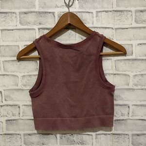 Women’s. Offline by Aerie. Crop top high neck bra. Recharge. Least support. Maroon stone washed color. Preowned like new condition. No stains/tears. Size Large.