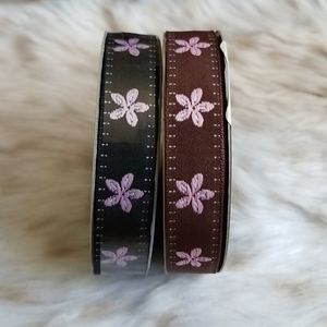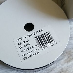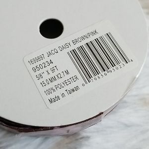 Never used. Brand new. Nine feet of 5/8" of jacquard ribbon with flower embroidery.