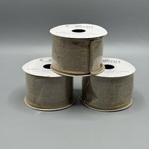 Offray Lot Of 3 Linen Ribbon 825 NATURAL Brown 2in X 9ft NEW
