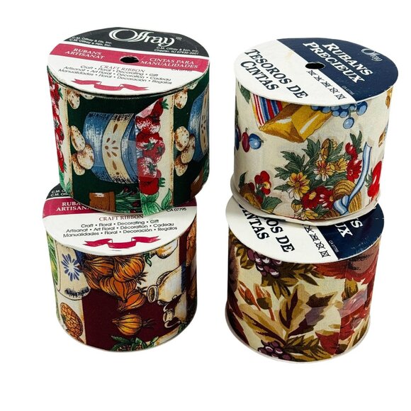 Offray Vintage Ribbon Fall Garden Fabric Craft Rolls 2-5/8" Wide - Used (4-Pack)