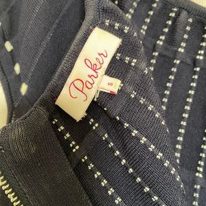 This beautiful dress is so versatile. You can wear it to work with a cute blazer or to a special occasion with heels! It’s stretchy materials allows for various sizing. Fits as a small/medium.